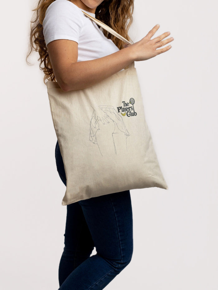 Tessuto 100% cotone resistente (140 g/m²)Stampa esclusiva "The Players Club"Manico singolo a spalla (85 x 2,5 cm)Cuciture incrociate sul manico per maggiore stabilitàCuciture interne con punto overlockDimensioni: 38 x 42 cmResistente e durevole per uso quotidianoLavaggio a mano tiepido